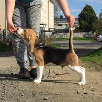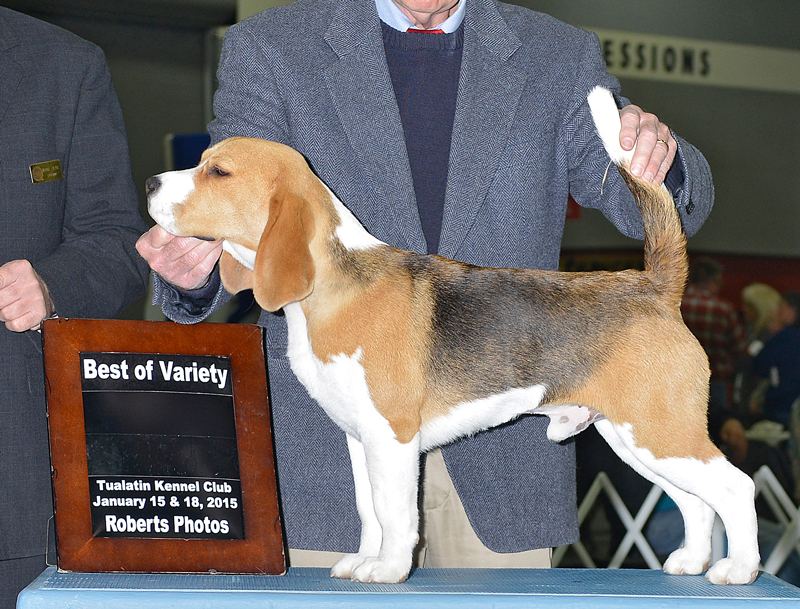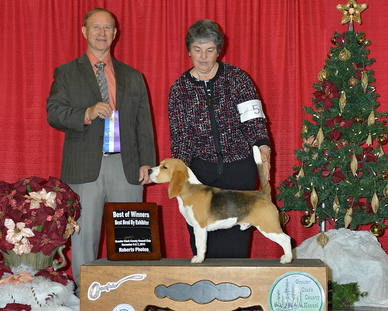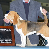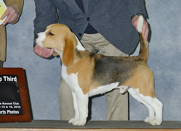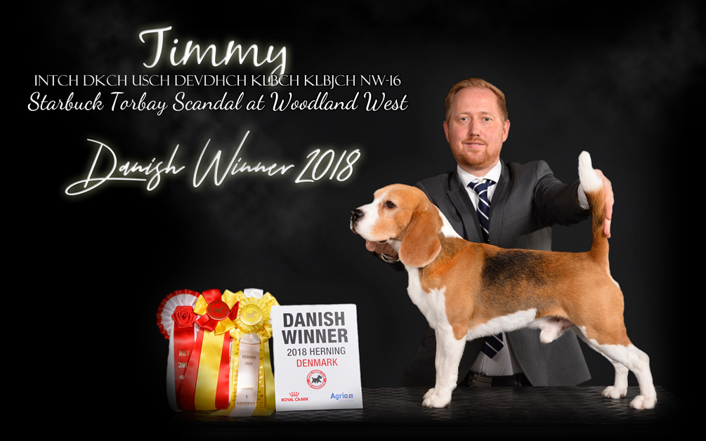 Timmy er søn af de 2 vindende beagles fra Westminster 2013 - BIS BISS GCH Bridgehill's Mr. Mason's Misbehavin og GCh Woodland West Wallet Candy.
